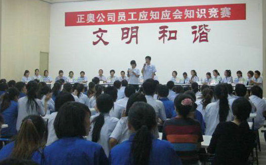 .為了促進公司全體一線員工學習、掌握崗位應知應會知識和基本的崗位技能、行為規(guī)范,提升一線員工的綜合技能素質,正奧公司工會組織生產一線員工,在發(fā)放知識卡片、進行全員書面測試的基礎上,選拔優(yōu)秀選手于9月14日晚開展了“應知應會知識競賽”活動,本次競賽根據生產工序共選撥7支參賽隊,每隊由3人組成。通過必答、搶答、觀眾互動等形式,根據各隊答題得分情況最終產生一、二、三等獎,公司領導為獲獎選手們頒發(fā)榮譽證書和獎金。