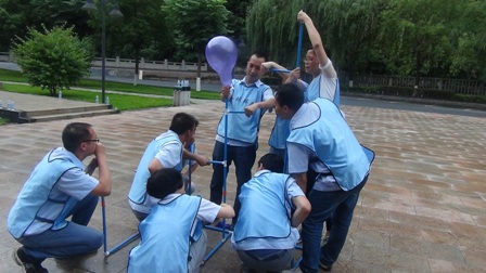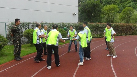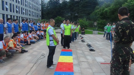 在拓展項目訓(xùn)練中,大家聽從指揮、服從安排,整個活動在緊張、激烈、歡聲中度過。活動開始,教練把參訓(xùn)人員分成“天藍(lán)色、深藍(lán)色、橙色、紅色、淺綠色、深綠色6支隊伍。在統(tǒng)一著裝及熱身后,大家便以小隊為單位投入到緊張的訓(xùn)練課程中?;顒影ㄖ笁喊濉⑺好?、真人CS、呼吸的力量、同心鼓、動力圈等項目,每一項訓(xùn)練,都是一次感動,每一次感動,都帶來一次心靈的震撼。每個游戲結(jié)束后,大家都對失敗的原因進(jìn)行深刻總結(jié),通過總結(jié)去領(lǐng)悟活動中所蘊含的理念和精神。讓大家深刻感受到了溝通、合作、相互激勵、融洽人際關(guān)系以及尊從團隊規(guī)范的重要性。如:“呼吸的力量”項目需要把各自隊伍分成 “領(lǐng)導(dǎo)組”“指揮組”和“執(zhí)行組”3個組。各小組成員各負(fù)其責(zé),由“領(lǐng)導(dǎo)組”成員向“指揮組”成員描述“呼吸機”的構(gòu)造及制作方法,再由“指揮組”傳達(dá)并指導(dǎo)“執(zhí)行組”動手制作。如何向其他成員描述機器的構(gòu)造和制作方法,以便耗時最短最高效的完成“呼吸機”的制作,考驗著大家上傳下達(dá)的語言技巧、溝通的能力和協(xié)作能力。還有在最后進(jìn)行的“動力圈”項目,更是將團結(jié)協(xié)作作用發(fā)揮到了極致,所有人圍成圓形,用力將柔軟的繩索向后拉扯,讓繩索變成一條鋼鐵般堅硬的繩圈,各自的隊長在繩子上抱圓走完全程!成功與否,在于對團隊成員信任,這種信任感來源于100%的執(zhí)行力和團隊協(xié)作能力!最終每個隊的隊長安全的走完了全程,活動在“眾人劃槳開大船”的激昂音樂中完滿結(jié)束。 一天的活動,每個人都有一份收獲、一份感悟。大家高效執(zhí)行、自我挑戰(zhàn)、互助協(xié)作、克難攻堅,增加了大家對團隊的理解和對自我價值的衡量。激發(fā)了大家克服了困難、克服了人性的弱點,真正的領(lǐng)悟到了團隊力量的強大,只要大家心往一起想、勁往一處使,任何困難和挫折都會被我們踩在腳下、拋在腦后,團隊目標(biāo)也一定會實現(xiàn)!