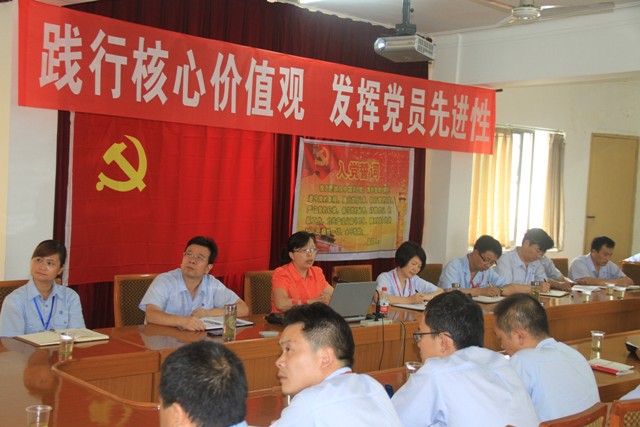 伴著雄渾的國(guó)歌聲,公司所有黨員干部全體起立,向黨旗致禮。隨后公司機(jī)關(guān)黨支部書記王子星宣讀了2013年預(yù)備黨員轉(zhuǎn)正以及接收2014年新預(yù)備黨員的決定。7名新預(yù)備黨員在黨委副書記李應(yīng)濤的領(lǐng)誓下,進(jìn)行了莊嚴(yán)的宣誓。隨著新黨員錚錚誓詞的落地和預(yù)備黨員代表發(fā)言完畢后。公司還特別邀請(qǐng)到十堰黨校黨務(wù)處李教授宣講以“踐行核心價(jià)值觀、發(fā)揮黨員先進(jìn)性”為主題的黨課。