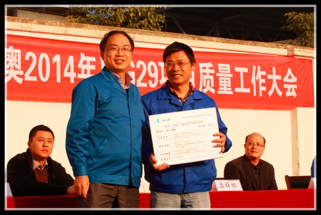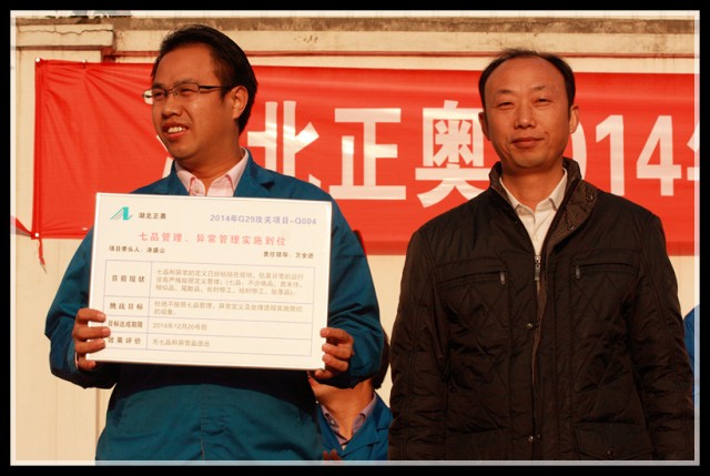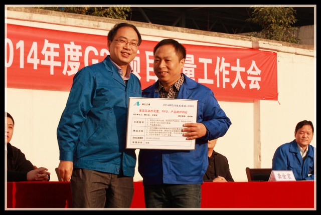 到會(huì)領(lǐng)導(dǎo)為G29項(xiàng)目組成員頒發(fā)了戰(zhàn)表,為下一階段的改善制定新的挑戰(zhàn)目標(biāo),全體員工見證了這一重要時(shí)刻,并在會(huì)議現(xiàn)場用熱烈的掌聲表達(dá)了完成任務(wù)的信心和決心。